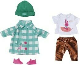 Asusetti 43cm nukelle. Paketissa mukana ruututakki, paita, legginsit, pipo ja kengät.