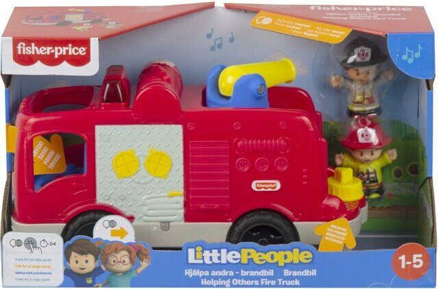 Pelastustehtävät hoituvat hienosti tällä Little People -paloautolla. Paloauto opettaa leikin myötä yhteistyötä ja toisten auttamista äänillä, fraaseilla sekä hauskoilla lauluilla. Pakkauksessa paloauto ja 2 hahmoa. Puhuu suomea ja ruotsia. 1,5 v+.
