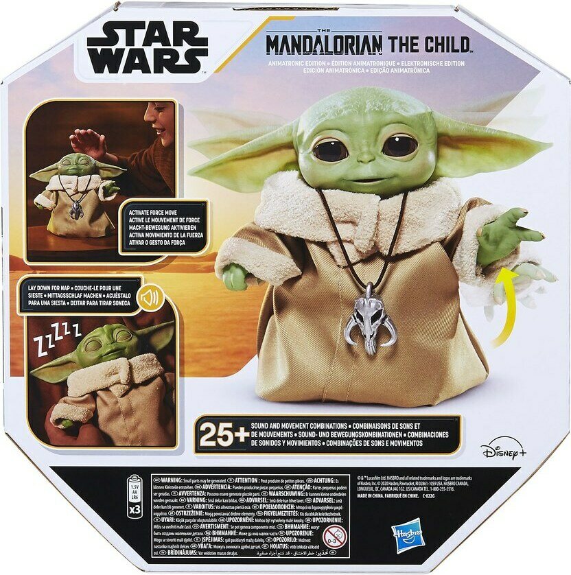 ProduktbeskrivelseHän voi näyttää Yodalta mutta hänen nimensä on The Child. Nyt sinusta voi tulla hänen suojelijansa. Kosketa päälakea ja saat aktivoitua 25 ääni ja liikeyhdistelmää, sisältäen iloiset ja jännittyneet äänet, kikatuksen. Kun hahmon pää liikkuu yläs ja alas, liikkuvat korvat eteen ja taakse, silmät avautuvat ja sulkeutuvat.