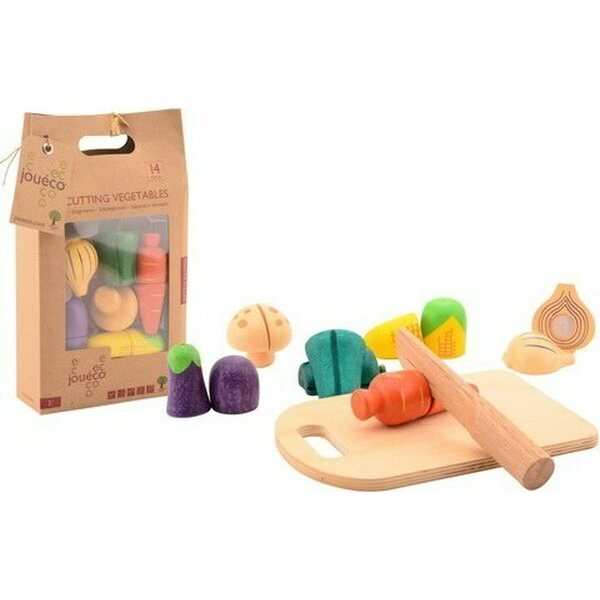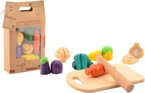 Leikattavat puiset vihannekset. Vihanneksen puolikkaat saa kiinni toisiinsa tarralla.