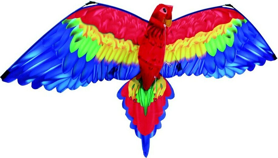 Upea värikäs 3D- lintuleija. Materiaali Ripstop-polyester. Helposti ja nopeasti lentovalmis leija; pakkaus sisältää leijan, kelauskahvan (ohjaimen), narun ja 2m pitkän pyrstön. Tuulisuositus: 20 – 40 km/h.Koko: n. 144 x 80 cm. Ikäsuositus 6+.