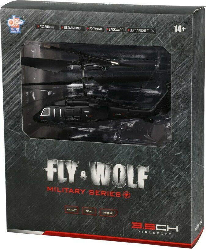 Helikopterissa sisäänrakennettu 3.7V 130mAh LI-poly akku. USB-latauskaapeli sisältyy. Ohjain vaatii 3xAAA paristot (ei sisälly). Kopteri liikkuu ylös ja alas, eteen- ja taaksepäin sekä kääntyy oikealle ja vasemmalle. Ikäsuositus 14+.