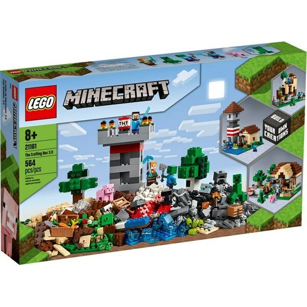Rakennuslaatikolla 3.0 (21161) voi rakentaa Minecraft™-pelaajien luovia seikkailuja. Se on pullollaan LEGO® Minecraft rakennuspalikoita ja tuttuja hahmoja, joiden avulla on helppo keksiä rajattomasti mielikuvitusleikkejä!