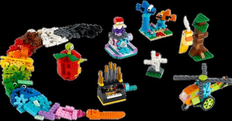 Mitä pakkaus sisältää? – Kaikki mitä lapset tarvitsevat rakentaakseen esimerkiksi piruetteja tekevän ballerinan, työnnettävän helikopterin pyörivillä roottoreilla, omenan ja pomppaavan omenamadon sekä paljon LEGO® palikoita luovaan rakenteluun