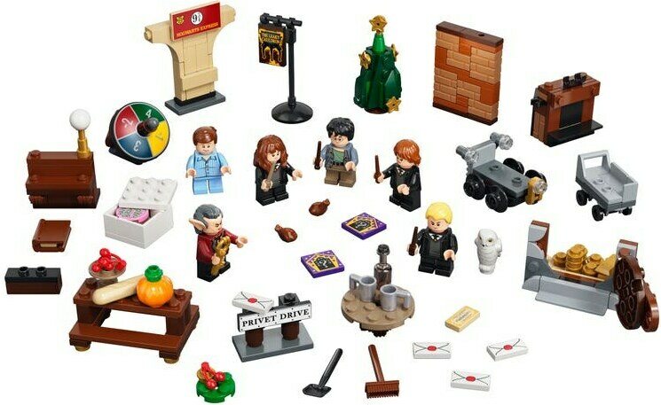 Kalenterin jokaisen 24 luukun takaa löytyy erilainen lahja. Mukana on 6 minihahmoa – Harry Potter, Ron Weasley™, Hermione Granger™, Draco Malfoy™, Dudley Dursley ja Lujahaka – sekä Harry Potter -elokuvista tuttuja jännittäviä esineitä ja lumoavia tarvikkeita. Suuren päivän lähestyessä lapset voivat yhdistää leluja ja leikkiä Harryn uskomatonta matkaa Likusteritieltä Tylypahkaan. Mukana on savupiipun kautta saapuvia Tylypahkan kirjeitä ja keräiltävää kultaa Irvetan holvista. Lapset voivat myös valita Harrylle koulutarvikkeita ja tutustua Hedwig™-pöllöön. Värikäs hyrrä tuo lisäjännitystä hauskan pelin muodossa. Leikki-ideoita riittää loputtomasti, joten taikaa riittää koko vuodeksi! Mukana on myös 2 velhokortti-yllätyslaattaa (voit kerätä kaikki 16).