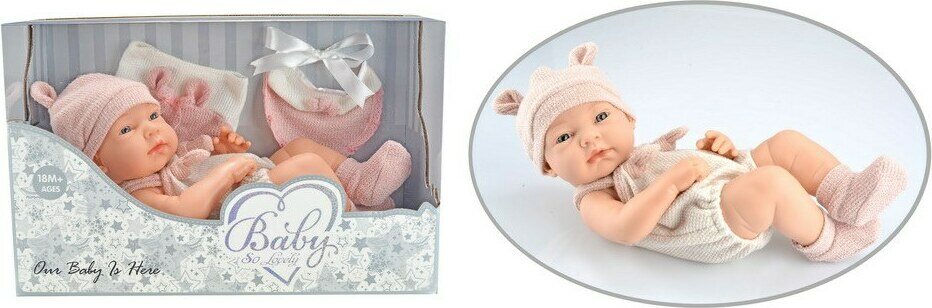 Suloinen vauvanukke kuin oikea vauva! Mukana pienet pöksyt sekä ruokalappu. Nuken pituus 38 cm. Kova vartalo. Ikäsuositus 3+ vuotta. Tuotteen mittatiedot: 40 x 26 x 17 cm – 1,04 kg