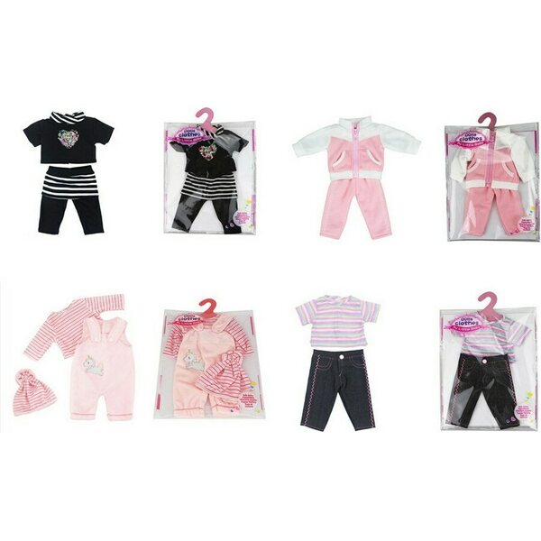 Kauniit oloasut vauvanukelle. Sopii 38-46 cm nukelle. Lajitelmassa 4 erilaista vaatetta. Ikäsuositus 3+ vuotta. Tuotteen mittatiedot: 25 x 31 x 2 cm – 0,074 kg
