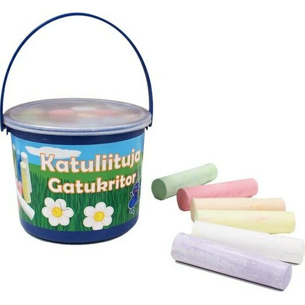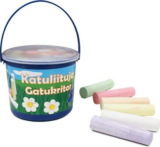 Katuliiduilla piirretyt kuvat piristävät harmaata asvalttia ja katukivetystä. Muoviämpäri sisältää 20 katuliitua, seitsemän eri väriä. Ikäsuositus yli 3-vuotiaille.
