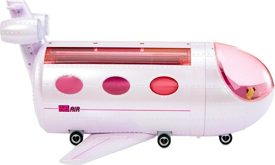 L.O.L. -nuket matkustavat tyylillä! Aseta matkatavarasi hattuhyllylle ja valmistaudu lentokoneen nousuun. L.O.L. Surprise OMG Travel Plane -leikkisetti avautuu upeaksi leikkialueeksi, josta löydät lentokoneen, auton, äänitysstudion ja paljon muuta. Matkan aikana voit luoda vaikka seuraavan hittibiisin! Pakkaus sisältää runsaasti erilaisia tarvikkeita, sillä mukana on jopa 50 hulppeaa yllätystä! Sisältää muun muassa: tarjoilukärryt, kuulokkeet, matkustustarvikkeita, unimaskeja, laukkuja, mikrofonin ja kaksi juomalasia.