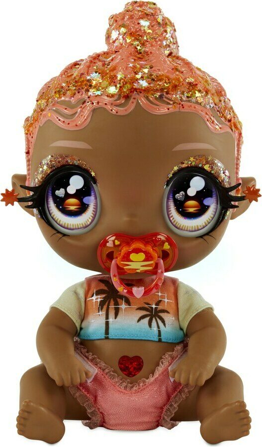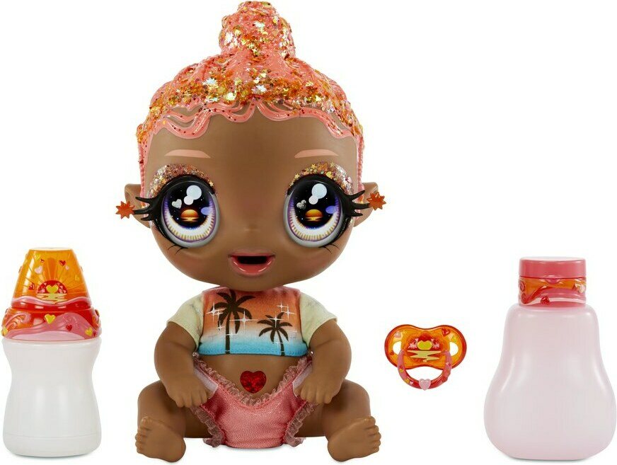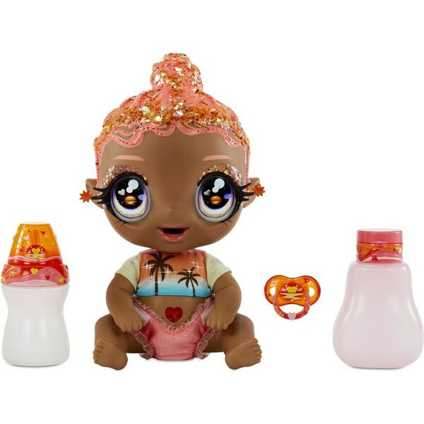 Product descriptionKylvetettävä nukke, jolla väriä vaihtavat hiukset. Nukella liikuteltavat jalat ja kädet, joten sen voi laittaa istumaan sekä makaamaan. Pakettiin sisältyy irrotettava t-paita, uudelleenkäytettävä kimalle vaippa, tutti, väriävaihtava juomapullo ja väriävaihtava shampoo pullo.