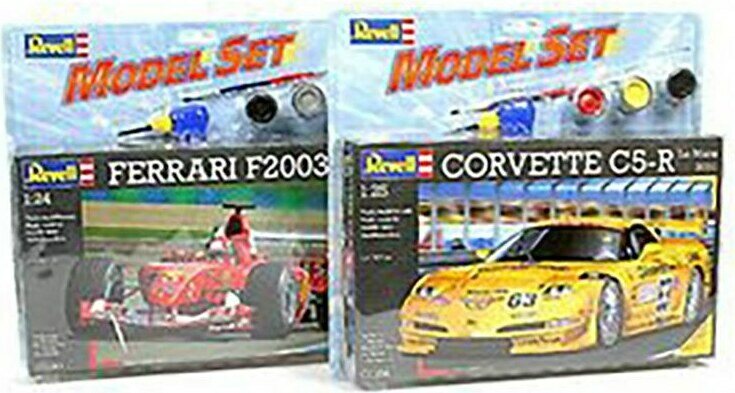 Lajitelmassa saatavilla erilaisia autoja. Hinta sisältää yhden koottavan auton.