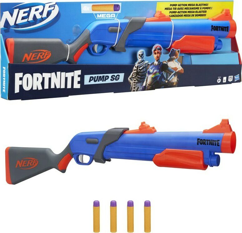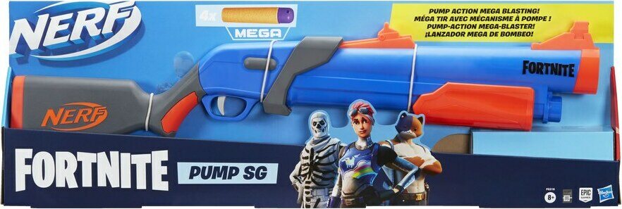 Product descriptionPumpputoiminen Nerf Fortnite Mega -blaster. Mukana tulee 4 virallista Nerf Fortnite Mega -nuolta. Virallisten Nerf-ammusten tehokkuus ja laatu on testattu ja hyväksytty. Ammusten materiaalina on vaahtomuovi, ja niissä on ontot, joustavat kärjet.
