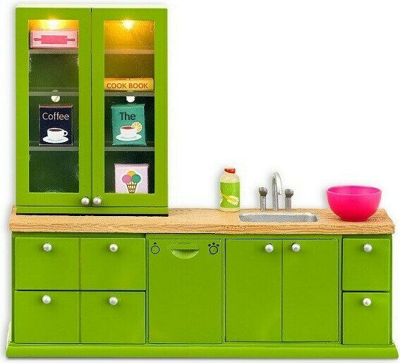 DescripciónKeittiö on kodin sydän! Sisusta nukkekotisi tiskipöydällä, pesualtaalla ja astianpesukoneella, jossa on tyylikäs vihreä väri ja puiset yksityiskohdat. Keittiössä on avattavat kaapit ja laatikot, ja se sisältää myös hienon vitriinikaapin ja valaistuksen. Lundby-sähkötarvikkeita saa käyttää vain Lundby-nukkekodissa yhdessä Lundby-jännitemuuntajan kanssa.