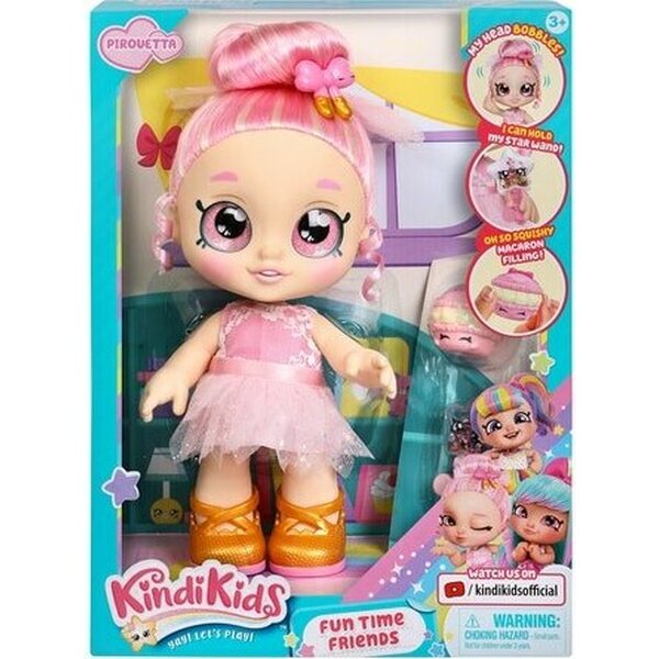 33 cm kokoinen Pirouetta -nukke ballerina-asulla. Nukella liikkuvä pää. Pakkauksen mukana tulee myös glitteri sauva ja pehmo macaron leikkileivos. 3+ vuotiaille