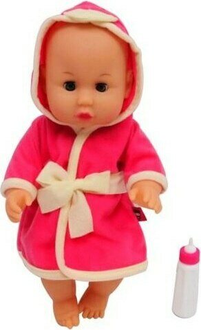 HF Emma Baby nukke kylpytakissa. Mukana myös tuttipullo. Pituus 30 cm.