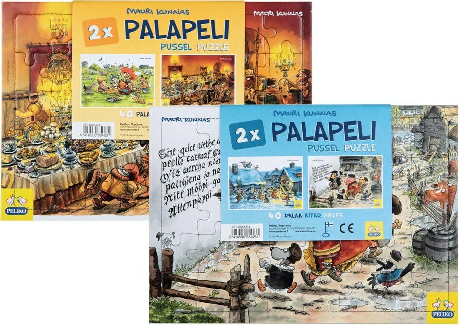 Description du produitKaksi erilaista Kunnas-aiheista palapeliä, joissa on molemmissa 40 palaa. Molemmat palapeleistä ovat koottuina A4-kokoisia. Palapelin palat ovat kooltaan lapsen käteen sopivia. Tuotteen kuvat saattavat vaihdella saatavuuden mukaan. Kokoamisen voi suorittaa myös eräänlaisena kilpailuna kaverin kanssa, sillä molemmissa setin palapeleissä on yhtä monta palaa ja ne ovat haastavuustasoiltaan samaa tasoa. Palapelit ovat mielenkiintoinen ja opettavainen ajanviete, joka kehittää hahmotuskykyä ja sorminäppäryyttä. Lapsi viihtyy palapelin äärellä itsekseen, mutta kokoaminen yhdessäkin on mukavaa tekemistä. Palapelit ovat mainio lahjaidea, ja ne voi koota yhä uudelleen ja uudelleen.