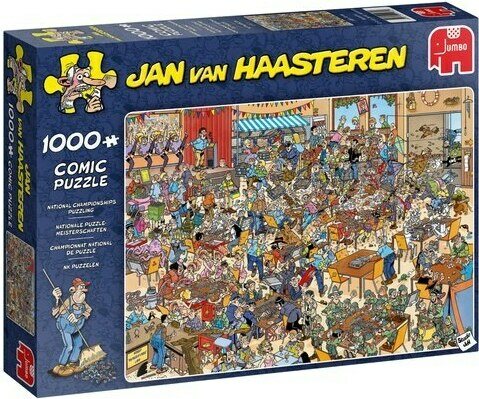 Jan van Haasteren on vuosikymmeniä luonut erittäin yksityiskohtaisia, värikkäitä ja ennen kaikkea humoristisia kuvia. Jumbon 1000 palan palapeli.