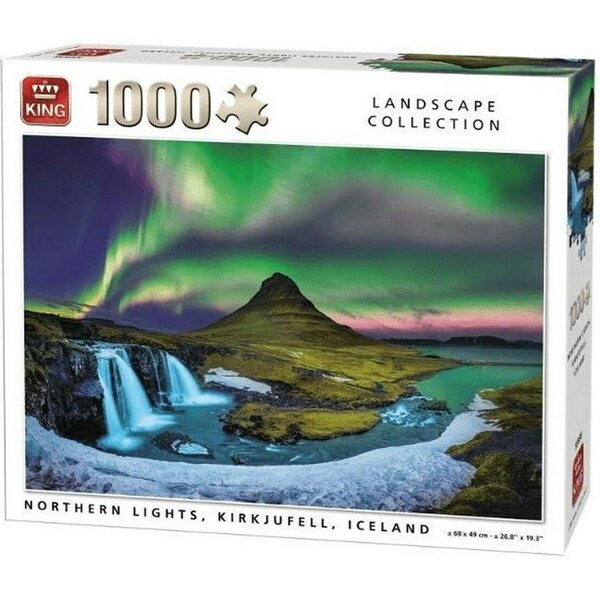 Kingin 1000-palainen palapeli Islannin revontulista. King-palapelit ovat laadukkaita ja niitä on valmistettu Hollannissa 1970 luvulta lähtien. Valmiin palapelin koko 68x49 cm.