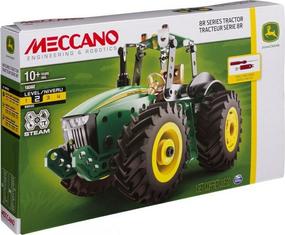 MECCANO JOHN DEER 8r TRAKTORI Koottava traktori 240 osaa, tarvittavat työkalut tulevat paketin mukana.