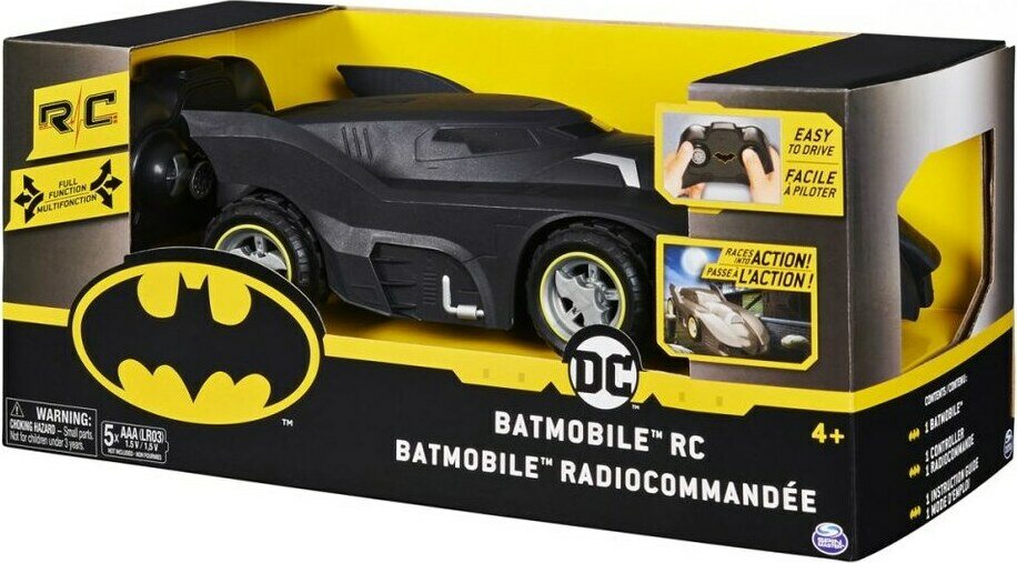 1:24 kokoinen kauko-ohjattava Batmobiili ja ohjain. Taajuus: 2.4 GHz Etäisyys: 75 m Vaatii 5 x AAA paristot (ei sisälly pakkaukseen) 4+ vuotiaille