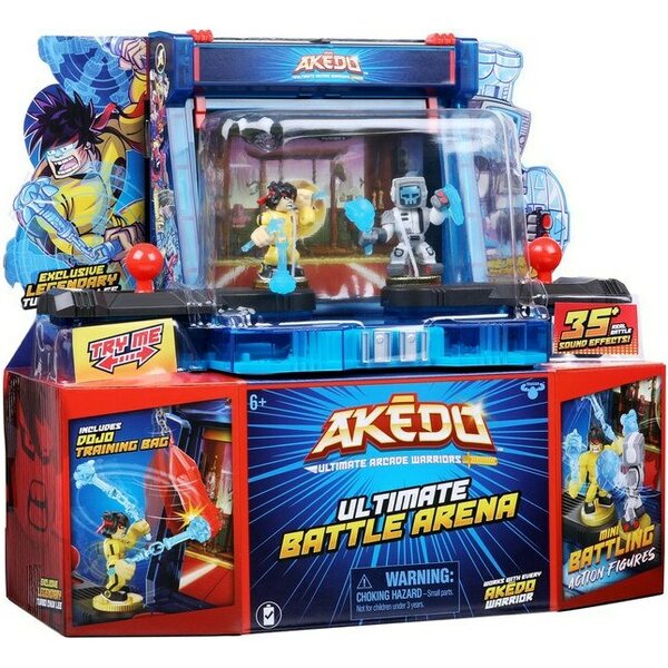 Descrizione del prodottoAkedo-taisteluareenalla käyt vauhdikkaat kaksintaistelut arcade-pelin hengessä. Settiin kuuluu taisteluareena, jossa äänitoimintoja, kaksi erikoisharvinaista figuuria, kaksi erikoisohjainta ja treenisäkki harjoittelua varten. Sis. paristot. 6+