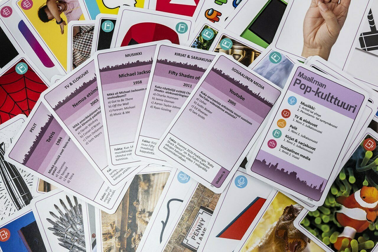 Descrizione del prodottoSeuraatko pop-kulttuurin viimeisimpiä virtoja? Tämä pikkuinen peli kertoo aikamme suosituimmista populaarikulttuurin ilmiöistä. Jokaisessa kortissa on kuva tunnetusta ilmiöstä tai asiasta, siihen liittyvä kysymys, sekä lyhyt fakta sen kiehtovasta tarinasta. Vuoroaan ei kenenkään tarvitse jäädä odottamaan, sillä kaikki vastaavat kysymyksiin samaan aikaan. Näppärän kokoinen peli sisältää 50 korttia ja sopii niin matkalaukkuun kuin peli-iltaankin!