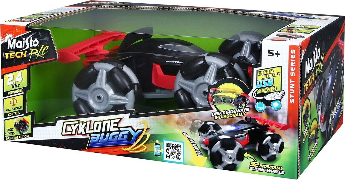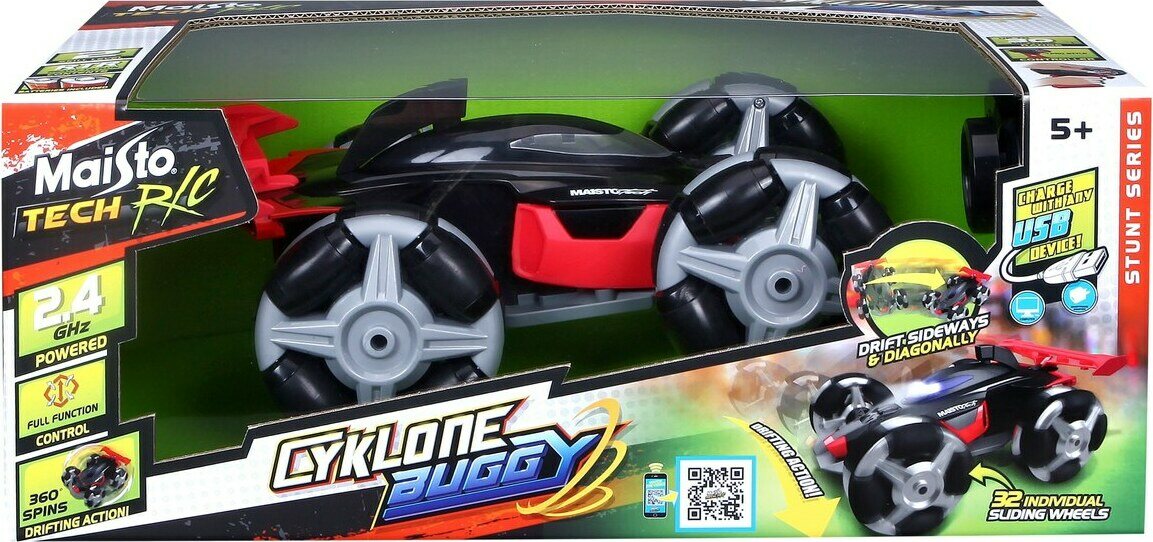 Descrizione del prodottoDriftaus ei ole koskaan ollut niin helppoa kuin tällä R/C Cyklone Buggy 4WD -autolla jossa on ainutlaatuinen renkaiden muotoilu. Led-valot.