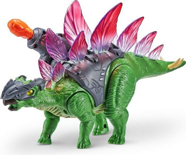 Descrizione del prodottoDinot ovat varustautuneet asein ja haarniskoin – ne ovat entistä vaarallisempia! Tällä 18 cm korkealla Stegosauruksella on haarniska, josta voi ampua ohjuksia. Sen piikkeihin syttyy valot ja se kävelee ja ärjyy. Paristot 3x AAA eivät sisälly. 3+