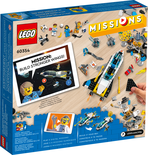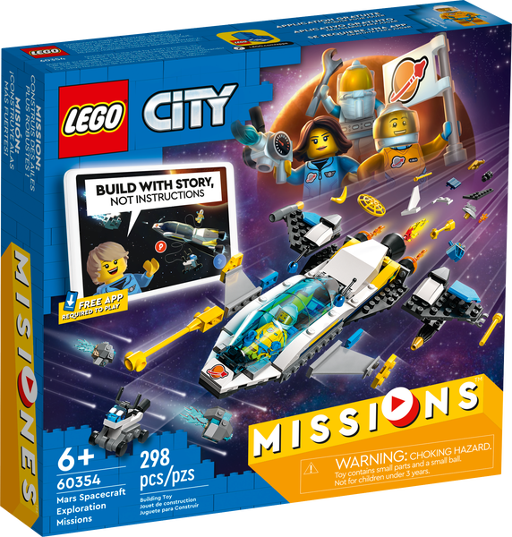 ProductomschrijvingInnosta lasten leikit uusiin ulottuvuuksiin interaktiivisella leikkielämyksellä, jossa he pääsevät pääosaan digitaalisissa seikkailutarinoissa. Kiehtovat ruudulla näkyvät tehtävät ratkaistaan oikeita LEGO® palikoita käyttäen. LEGO City Mars-avaruusaluksen tutkimuslennot (60354) on lelusetti, johon kuuluu huikea avaruusalus ja planeettaa tutkiva mönkijä, 3 minihahmoa, robokoiran hahmo sekä paljon LEGO osia, joilla toteutetaan hauskojen tarinoiden rakennushaasteet.