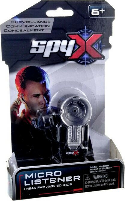 SpyX Micro Listener- mikrofoni välittää tiedon kuuntelulaitteeseen ja korvanappiisi, jolloin voit kuunella salaisia keskusteluja. Toimii osoittamalla mikrofonia puheen suuntaan, jolloin ääni kuuluu korvanappiisi.