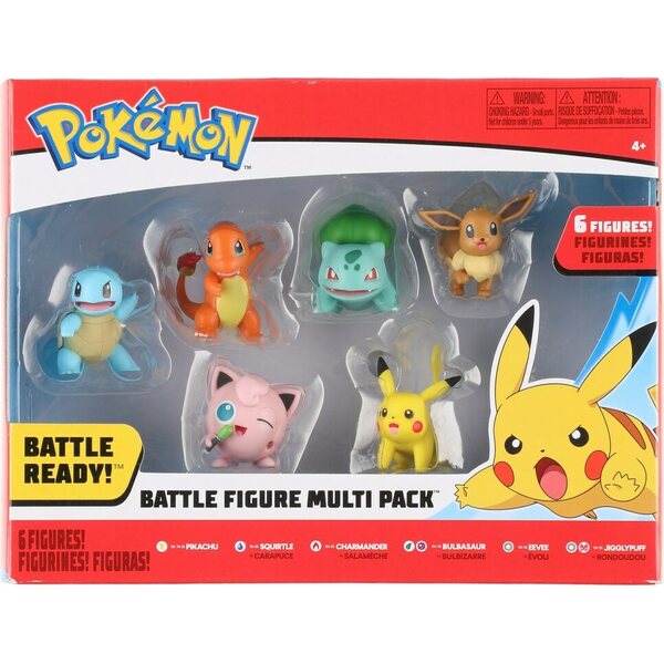 Pakkaus sisältää kuusi muovista Pokemon figuuria. Ikäsuositus 4+