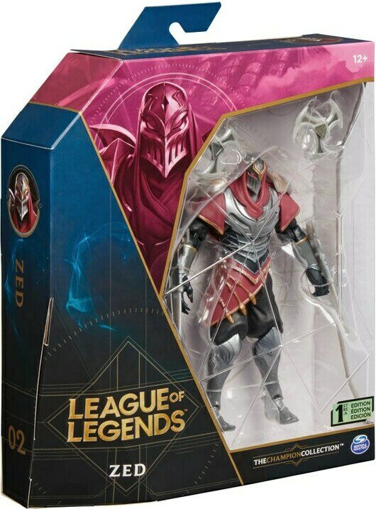 League of Legends toimintafiguuri Zed. Mukana hahmolle kuuluvia lisätarvikkeita. Figuurin koko 15 cm.