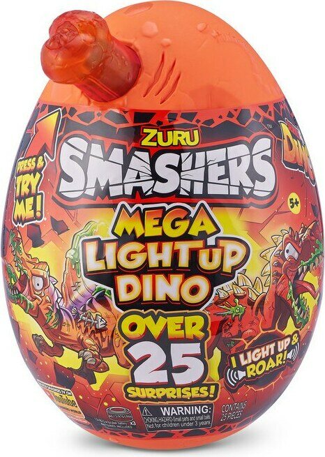 Hajota Smashers-muna ja ylläty! Kaiva esiin liekinhohtavan dinosauruksesi osat ja herätä se henkiin munasta löytyvän DNA:n avulla! Sisältää myös muita yllätyksiä. Kaksi erilaista dinoa, myydään erikseen. Ääni- ja valotehosteita, sis. paristot. 3+
