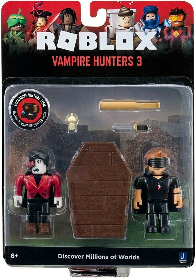 Roblox Vampire Hunters 3 figuuri. Pakkauksessa kaksi hahmoa, arkku ja kaksi asetta. Ikäsuositus 6+ vuotta.