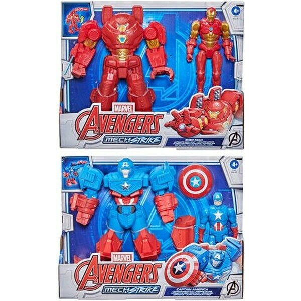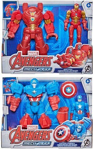 Avengers Mech Strike Iron Man figuuri Pakkauksessa kaksi erikokoista figuuria. Figuurien kädet ja jalat ovat liikuteltavissa. Ikäsuositus 4+ vuotta.