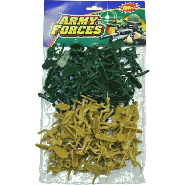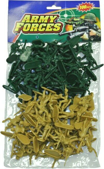 Pakkaus sisältää 100 kpl muovisia sotilaita. Ikäsuositus yli 3-vuotiaille.