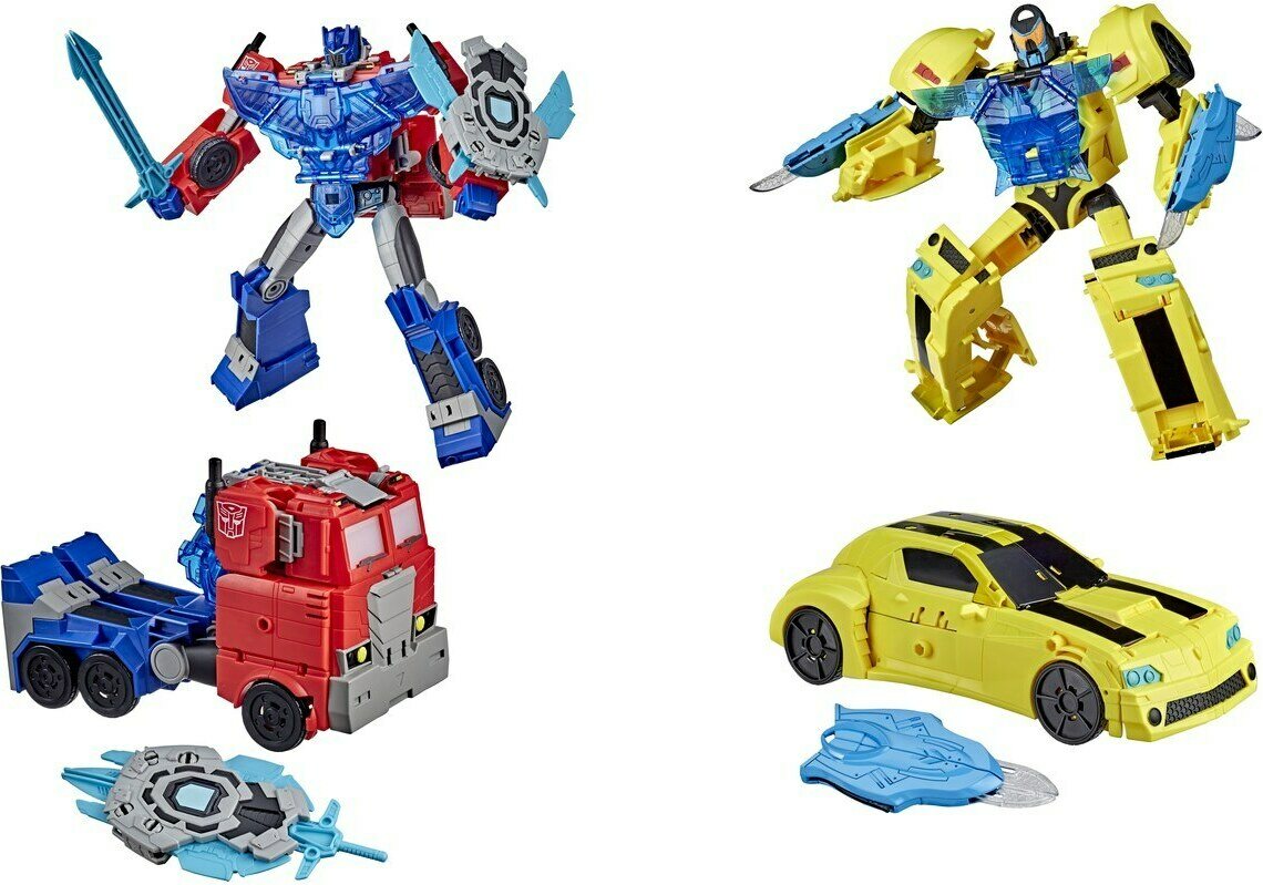 Ääniohjattavat Officer Class -hahmot Bumblebee ja Optimus Prime! Leikkijän äänet toimivat taistelukutsuna, jolloin panssari kääntyy selästä suojaamaan hahmon rintaa. Ääniohjattava panssaritoiminto aktivoituu robottimuodossa. Hahmot muuntuvat tilasta toiseen 10-14 vaiheessa. Myös ääni- ja valotehosteita. Ikäsuositus 6+.