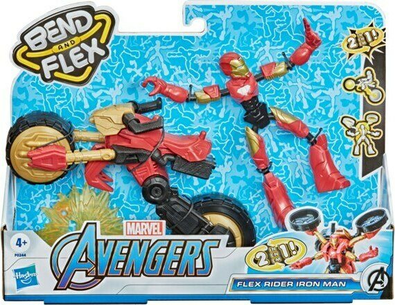 Bend and flex venyvä Iron Man hahmo ja ajoneuvo. Ikäsuositus 4+