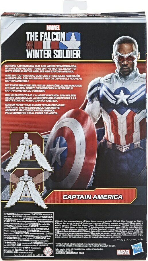 Wakandasta saatuun uuteen pukuun ja siipiin sonnustautunut Sam Wilson on valmiina yhdistämään ihmisiä maailman uutena Kapteeni Amerikkana! Kuvittele urhea Sam Wilson lentämässä taisteluun tällä Titan Hero Series Captain America hahmolla! Hahmon mukana tulee Kapteeni Amerikan ikoninen kilpi sekä kaksi siipeä, jotka voidaan kiinnittää hahmon selkään.