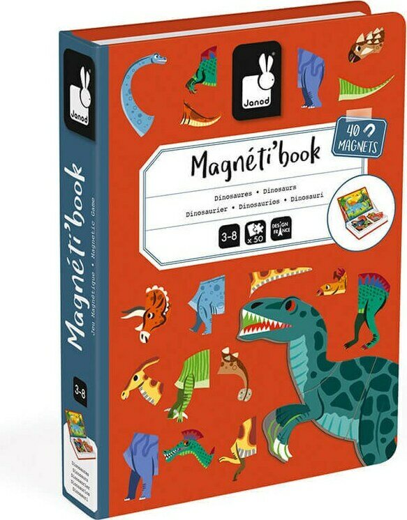 Hyppää ajassa taaksepäin dinosaurusten aikakauteen! Dinosaurusaiheinen Janod Magneettikirja dinosaurukset on luova ja ihastuttava lelu leikki-ikäisille lapsille. Katso mallia korteista ja rakenna jopa 10 näyttävää dinosaurusta 40 magneettiosaa yhdistelemällä aina kolmisarviliskoista tyrannosauruksiin. Dinosaurusten jännittävä ja kiehtova maailma tempaa lapsen mukaansa, joten Magneettikirjan kanssa riittää ihmeteltävää ja puuhasteltavaa pitkään. Magneettikirja on myös oiva valinta synttärilahjaksi 3-8 –vuotiaalle lapselle.