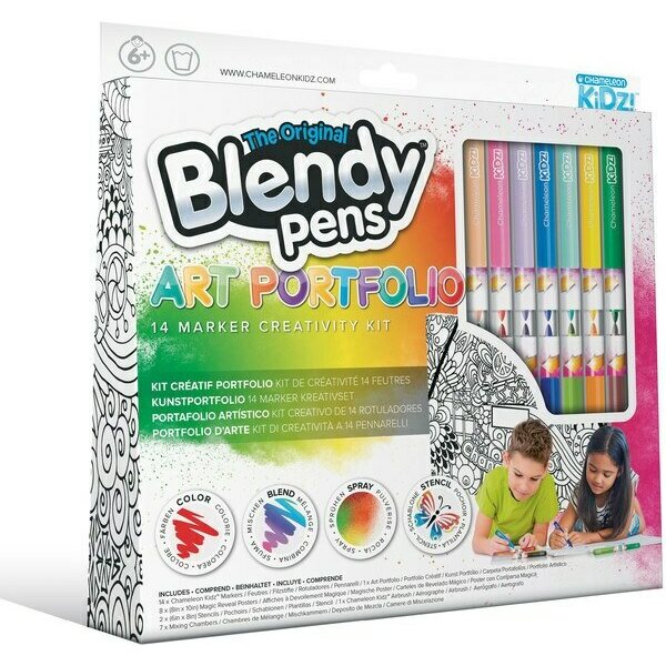 Chameleon Kidz -tusseilla voit piirtää, värittää ja spreijata. Yhdistä värejä sekoituskapselissa, niin saat upeita liukuvärejä. Setissä 14 tussia, 7 sekoituskapselia, 2 sapluunaa, airbrush, 8 väritysjulistetta ja salkku tarvikkeiden säilytykseen. 6+