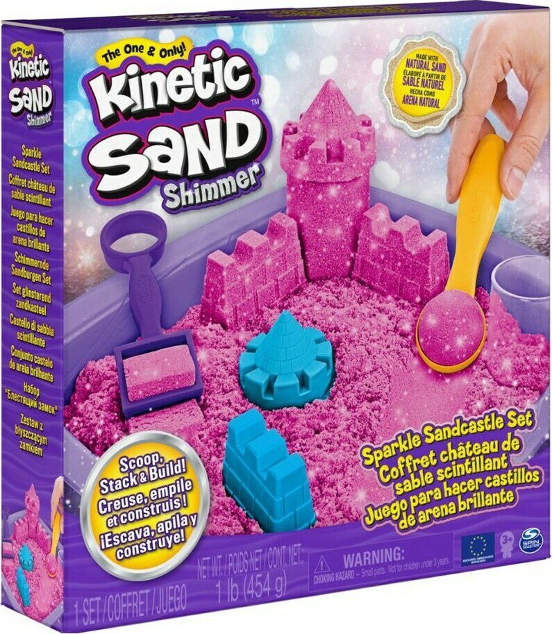 Kinetic sand kimaltava hiekkalinna pink.