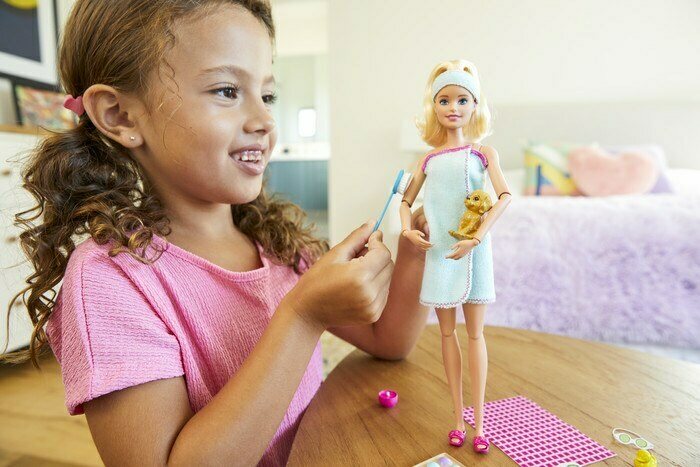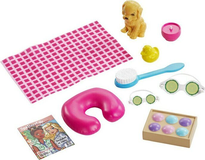 Barbie pitää huolta hyvinvoinnistaan eri tavoin. Riittävä uni, liikunta ja rentouttavat kylpyläpäivät pitävät Barbien reippaana ja jaksavana. Wellness-setti sisältää nuken, lemmikin ja erilaisia tarvikkeita. Kolme erilaista, myydään erikseen. 3+