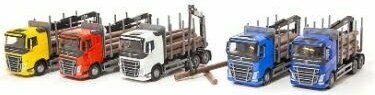 Volvo FH tukkiauto, jossa tukkinosturi tukkien lastaamiseen. Värilajitelma. Tuotteen koko 33 cm. Mittakaava 1:25. Ikäsuositus 4+.