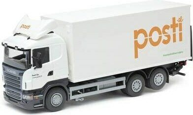 Autossa on alas laskettava takalaitanostin, takapyöräjousitus ja aukeavat takaovet. Pituus 36cm. Ikäsuositus 3+