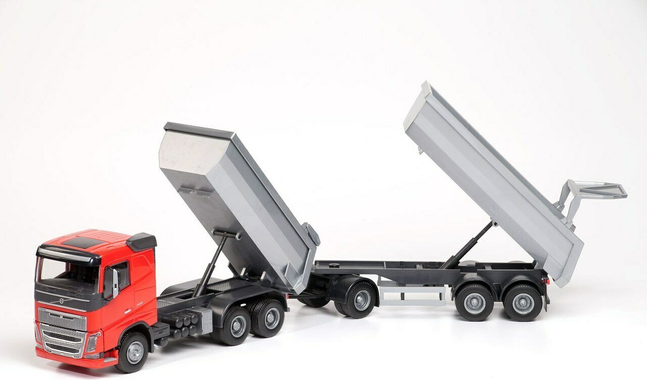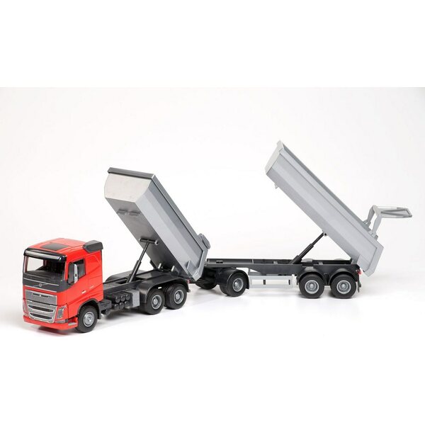 Volvo FH16 autossa ja peräkärryssä kippitoiminto sekä avattava perälauta. Autossa lisäksi takapyöräjuositus. Värilajitelma. 3+v