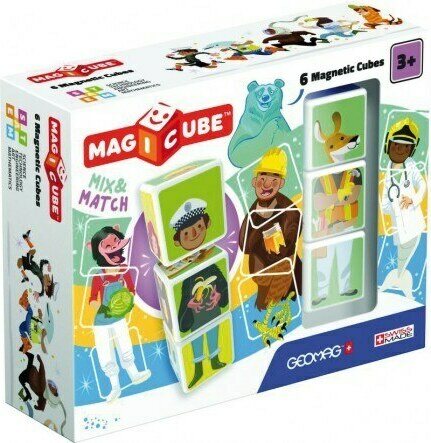 Geomag Magicube pakkaus, jossa 6 magneetti kuutiota. Kuutioita yhdistelemällä voi luoda hauskoja hahmoja. Ikäsuositus: 1-5 vuotta