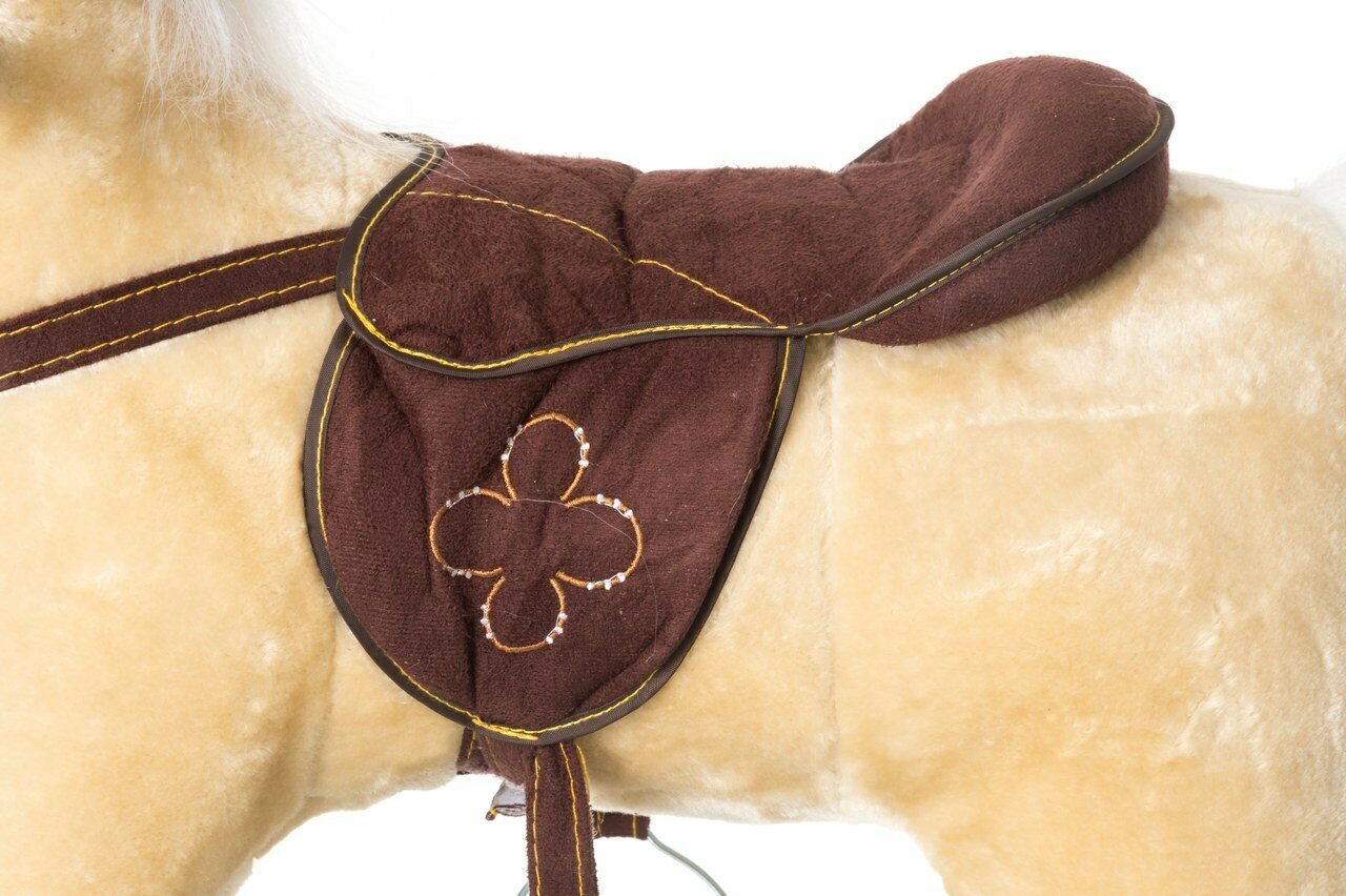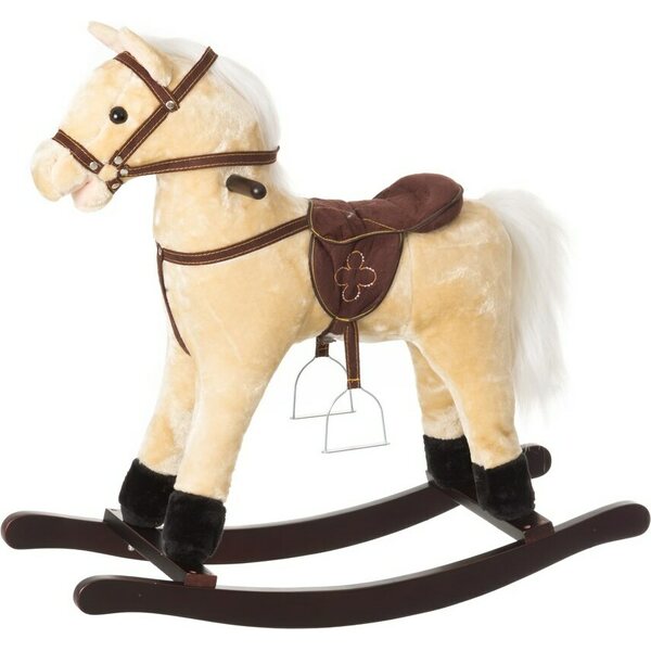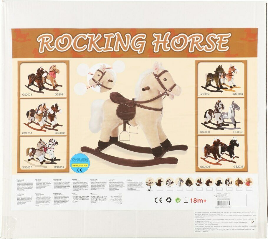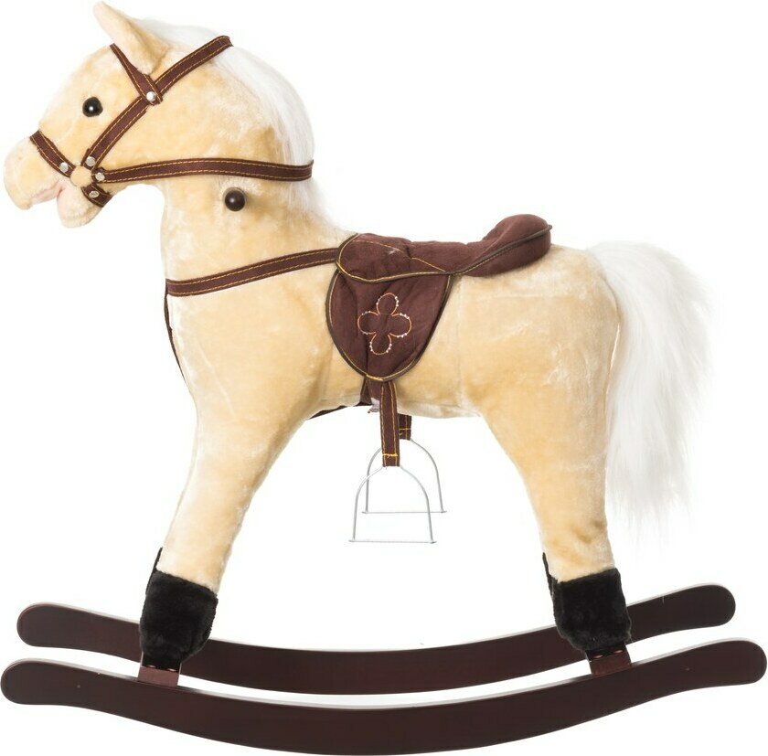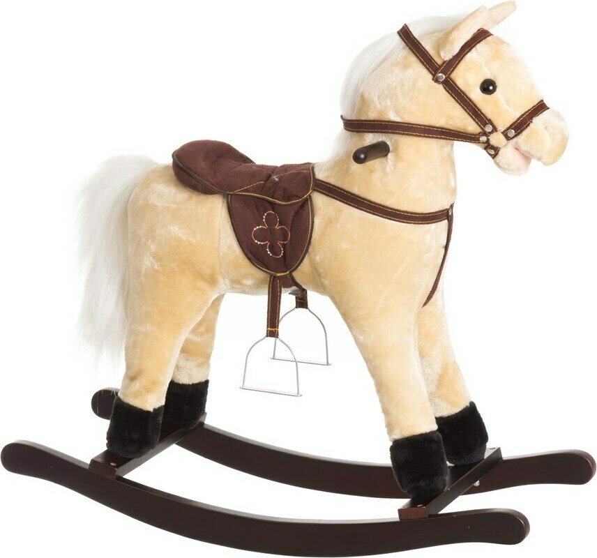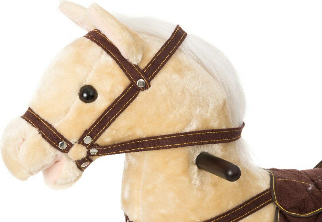 Keinuhevonen jolla satula ja päitset. Istuinkorkeus 46 cm. Kantavuus 50 kg max. Ikäsuositus 18kk+.