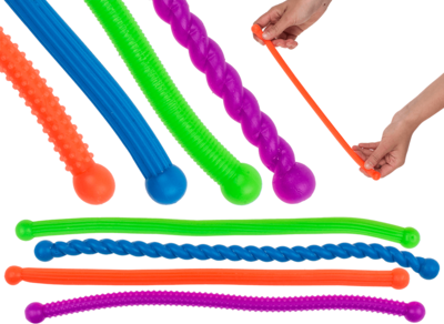 Fidget toy super venyvät pötköt. Pakkaus sisältää neljä erilaista pötköä. Pituus 29cm Ikäsuositus 3+