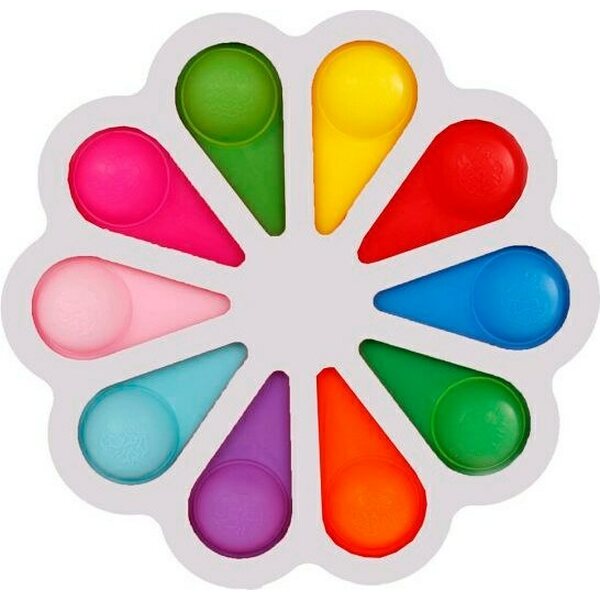 Plop up kukka on hauska ja värikäs fidget. Kukassa on kymmenen eriväristä painettavaa kuplaa. Halkaisija 18cm Ikäsuositus 3+